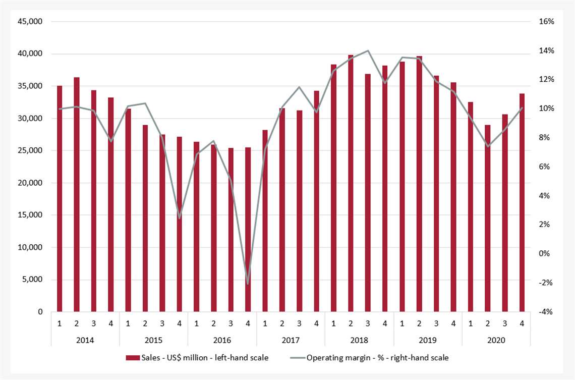 Revenues in the final quarter of last year reached US$35.2 billion. This represented a 10% increase on the third quarter of 2020 and a 17% increase on the second quarter, which was the low point. The figure for the fourth quarter of 2020 was only 5% lower than the same period in 2019.