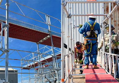 StepUp is offering Nordic’s composite deck and accessories to North America to offer sustainability-conscious choices that also reduce scaffolding workers’ heavy lifting. (Photo: StepUp Scaffolds)