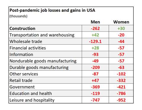 Yet, figures from the Bureau of Labor Statistics (BLS) and analysed by thinktank Institute for Women’s Policy Research (IWPR), show that although women in the US made a collective net loss of more than 3 million jobs between February 2020 and September 2021, the construction sector was one of the very few industries where the number of jobs held by women over that period actually increased by 300,000.