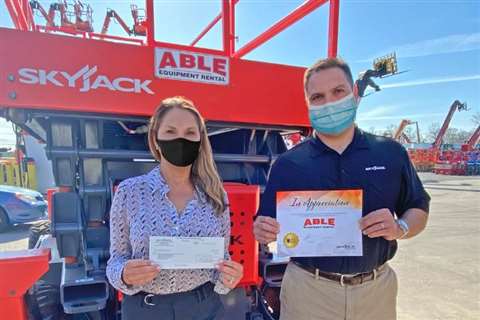 Skyjack presented ABLE Equipment Rental with a $1,000 check for the company’s community support